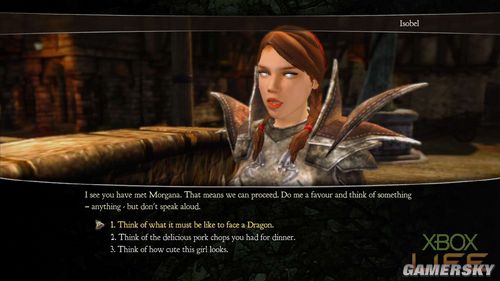 前往寻找几位大师的路途上,会有一位名为Isobel的屠龙者在桥上叫住玩家,她会教导玩家使用特殊技能「读心术」。玩家与NPC对话时,可以按下手把X键发动读心术的技能,就可以知道NPC在想些什么。每次使用读心术都必须消耗一些经验值。