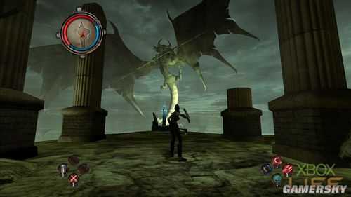 执行这个任务前,建议玩家角色等级至少要八级以上再开始,以免像笔者一样狂死到想摔手把。走到地点所指定的地点时,会触发一段剧情动画:一位受伤的龙骑士会出现在残破不堪的神殿里,她将会让主角重回事发现场。玩家在操控巨龙时,利用手把的X与Y键就可以进行攻击,朝着雷达标示的地点飞去,会再一次触发剧情动画。
