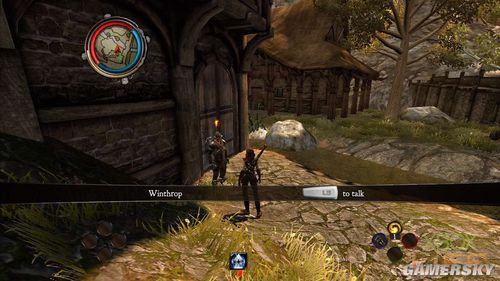 游戏开始时,玩家得走进前方的小镇,展开屠龙者的训练。进城后直接走到右下角靠近瀑布的地方与Morgana对话,她会将古老流传下来的龙之记忆传授给主角。成为屠龙者后,玩家就可以拥有银色的双目,并且与鬼魂交谈。临走前Morgana特别交代玩家要在城内找到几位屠龙者前辈,向他们学习各种日后战斗中所需的技能。