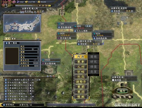 3月阁府递呈我王军报:吾依照王上十面埋伏之计,令赤松义右开通北路,绕过尼子老贼正面防线,继续推行占领村庄,商馆等基础设施的方针.另有XX众相助,成功吸引尼子战力出城耗粮!