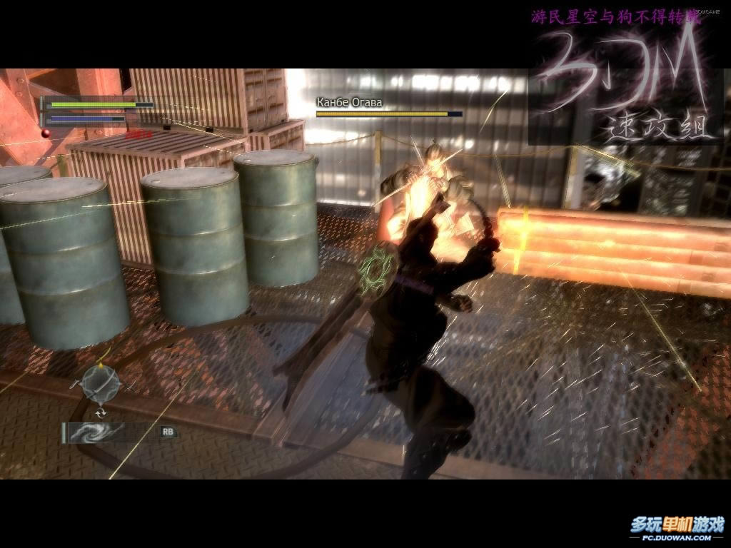 不过他老爸并不难对付,就是硬碰硬。按住LT防守,用第一把刀,向然后靠近他老爸,狂按X,不仅可以防守,而且攻击的时候威力不小,可以破掉他的防御,并且是连续攻击,可以连很多下