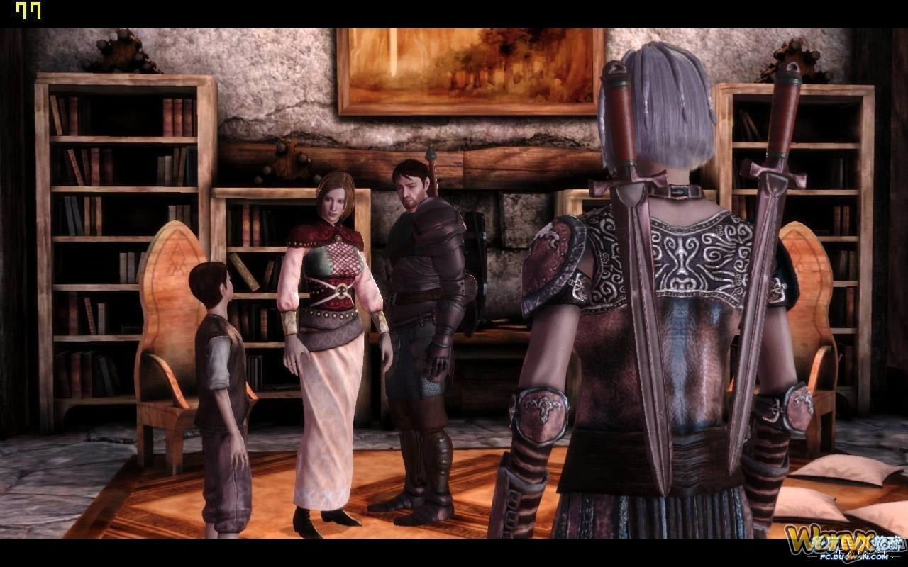人设方面,《龙腾世纪:起源》的人物设定很令本人喜欢,在造型方面,很多年轻的NPC,看起来非常适合亚洲人的审美观,完全可以看成一个装了美化MOD的上古卷轴4游戏世界。更令人欣喜的是,在这个世界中,不但不缺乏俊男靓女,而且各个年龄段的人物都随处可见,上到大年龄的老人,下到小屁孩,整个游戏世界的人群层次都非常的丰富。