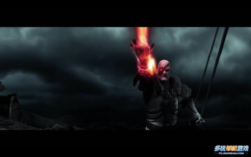 突然,他所配戴的眼罩发出红光,同时风暴亦变得更猛烈。