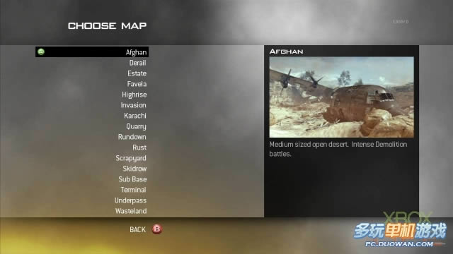 在对战地图的数量上,《使命召唤6:现代战争2》可以说是近年来的射击游戏里本体光碟内容收录最多的一款游戏。地图共有十六张可供玩家自由选择,每张地图的大小、适合玩家人数都设计得很巧妙。就以Afghan这张地图来说,二队人马会被分配在地图的左右二端,喜欢担任前锋的玩家可以透过矿道直接挺进到中央战场,狙击手则是能站在山上往下狙击。凭借著玩家们无与伦比的默契,这张地图绝对能让玩家感受到何谓步步为营的紧张感。