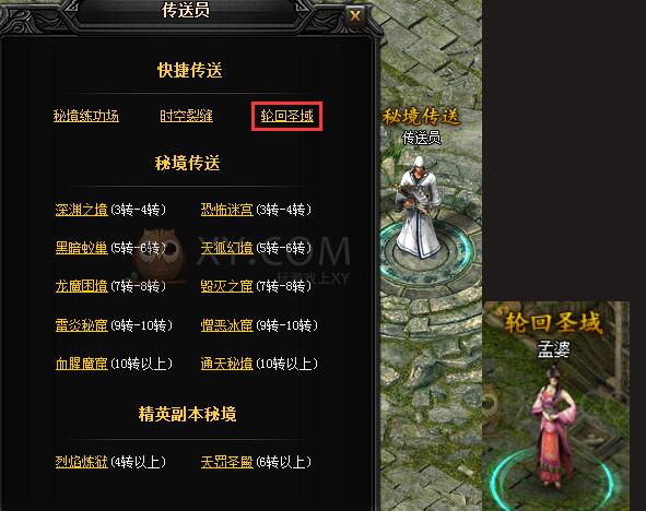 孟婆其实并不可怕的哦,孟婆真的很慈祥的,所有的玩家都是可以进入到符合当前转生等级的轮回圣域的。4转一下的玩家只能进入轮回圣域的一层的。