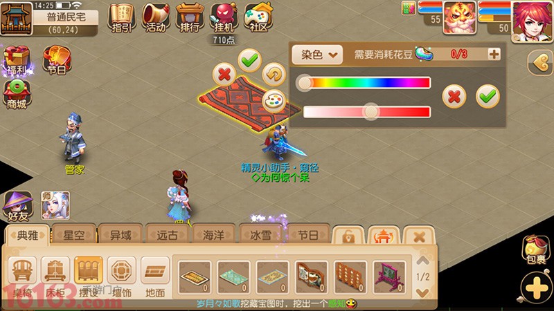 玩家可根据自身的喜好以及家具的风格,通过拖动染色条自由染色。