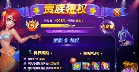捕鱼来了上线了新的版本,在新的版本中,增加了许多有趣的玩法,也增加了新的贵族等级。贵族8来袭,在贵族8中,玩家可以解锁新的贵族炮塔。