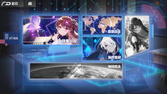 1、首先我们需要点击主界面箭头所指的出击按钮,进入出击界面:
