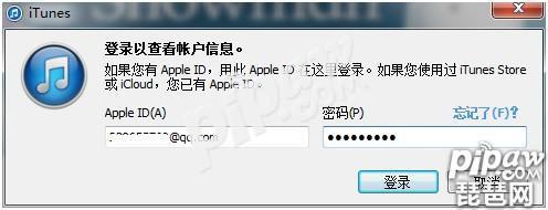 第一步:电脑打开iTunes,输入您的Apple ID登录;